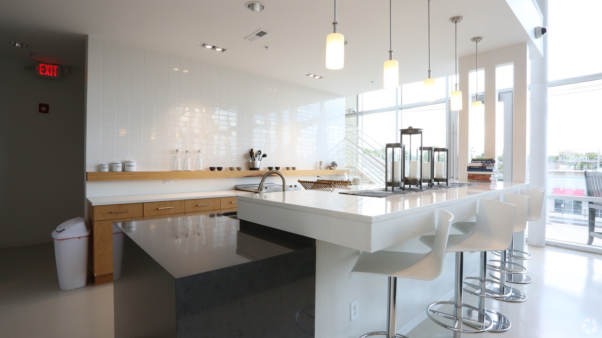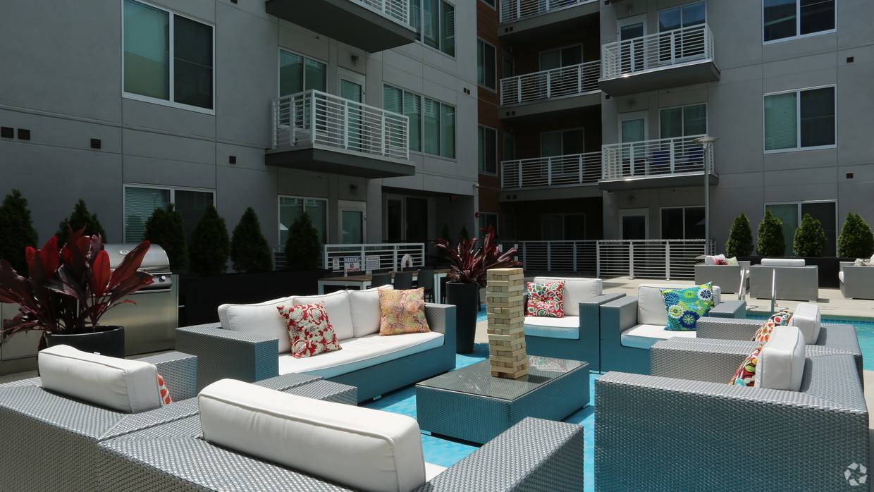 In the Fifth Avenue building, a two-story, open-air atrium features a swimming pool with a built-in hot tub surrounded by plenty of comfortable seating. Here, too, you'll find fire pits, barbecue grills, and plenty of comfortable seating and dining areas.