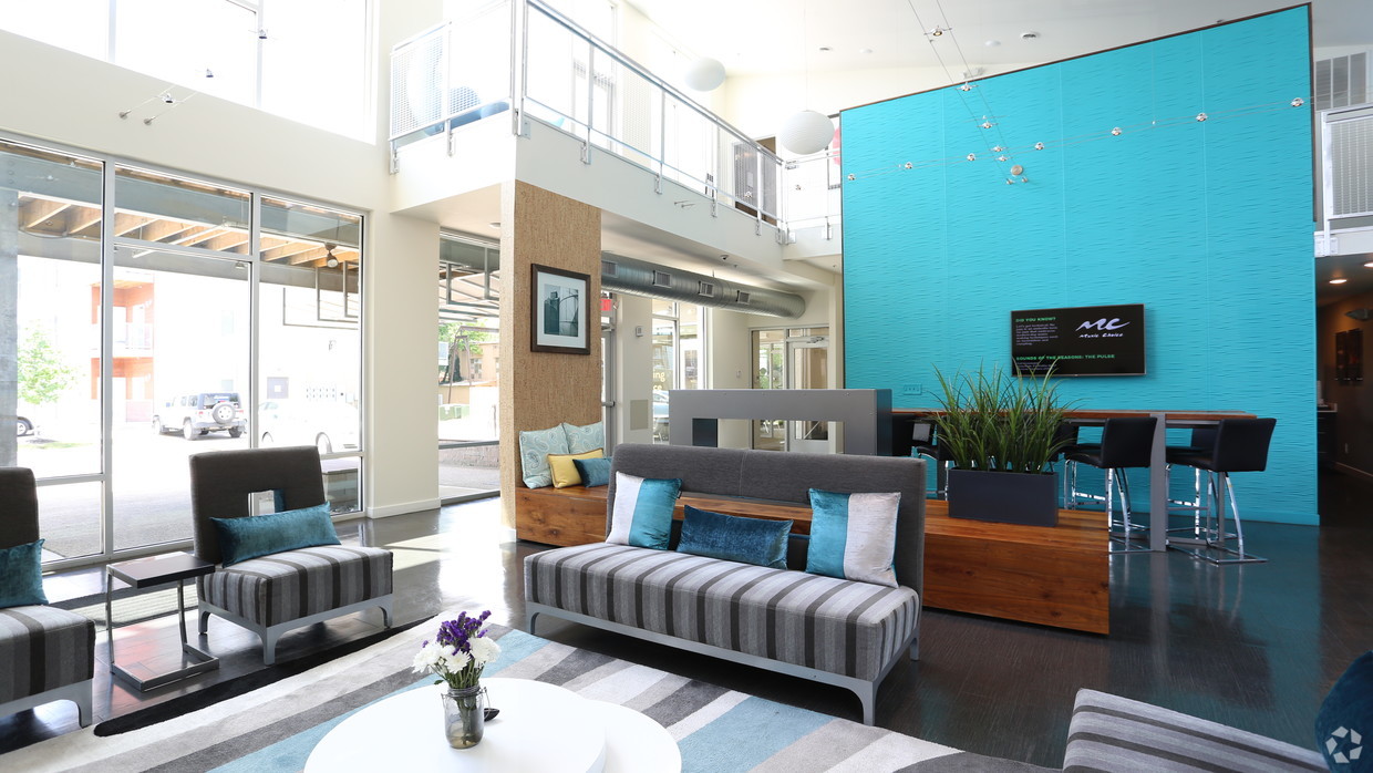 At Holly Avenue, the Clubhouse (where our property managers take care of all your needs) features two stories of light-filled gathering space, fully-wired tech tables, large flat-screen TVs, a fireplace, and a more intimate fitness facility. A sun deck off the second floor provides views of downtown Columbus.