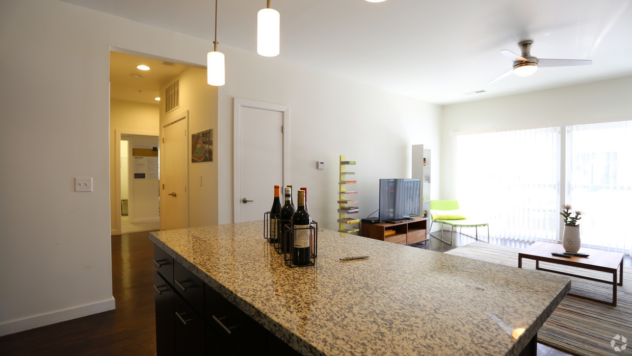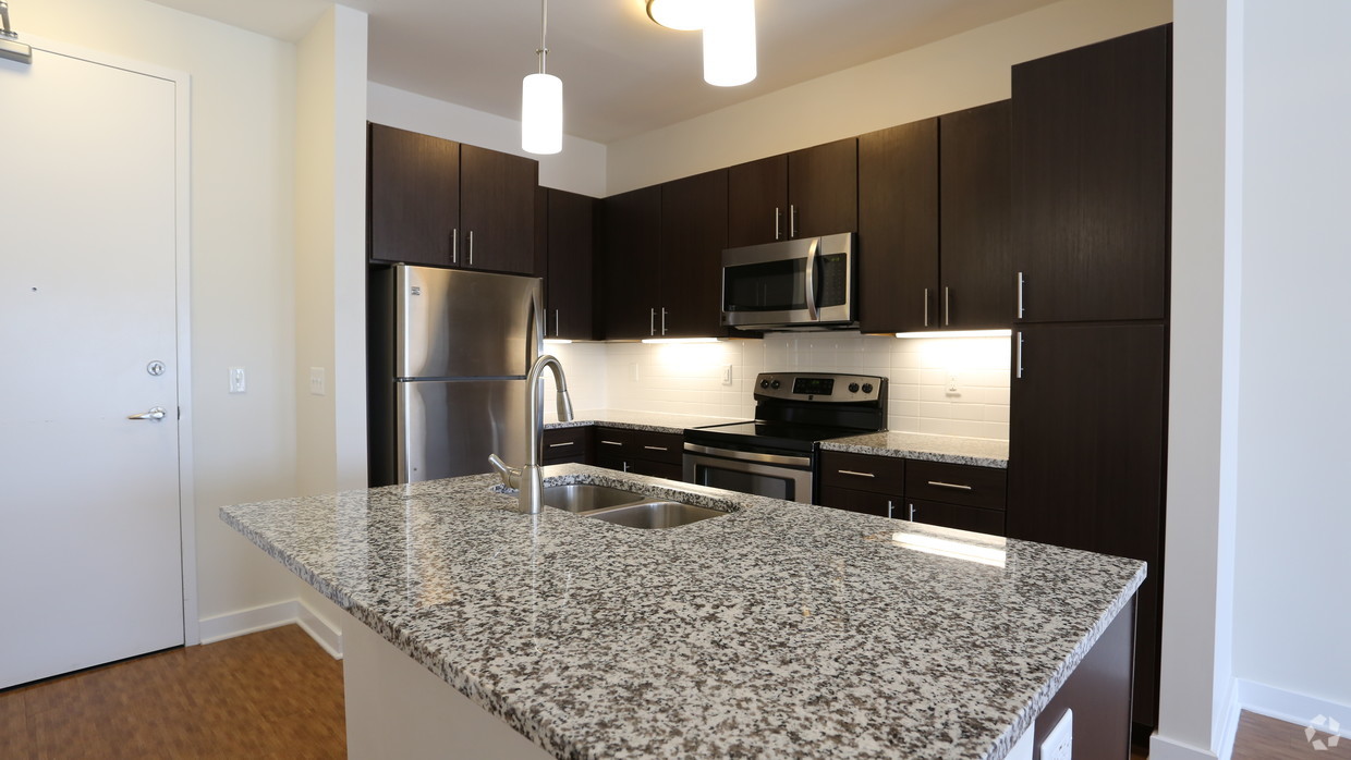 Each apartment’s kitchen features beautifully equipped, efficient workspaces. You'll appreciate the high-quality appliances, solid surface counters, and modern wood cabinetry. Refrigerators are complete with icemakers. Built-in islands or freestanding kitchen tables provide plenty of eat-in space.